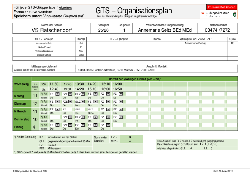 Betreuungstage/Woche: | 1 Tag | 2 Tage | 3 Tage | 4 Tage | 5 Tage |